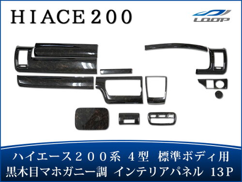 トヨタ ハイエース 200系 4型 S-GL スーパーGR 標準 ボディ用 特別仕様車 ダークプライム 専用 インテリアパネル 内装 車 カスタム パーツ 13P 黒木目マホガニー調 黒木目 黒 ブラック 木目 マホガニー おしゃれ ABS樹脂 H25.12〜