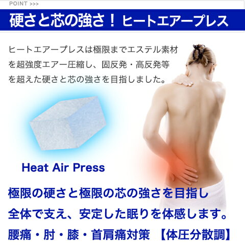 メーカー希望小売価格はメーカーサイトに基づいて掲載しています サイズ 【もう一枚の硬さで体圧分散調を!】 ◆ご使用の寝具の上にもう一枚の硬さをプラス ◆お布団の下に敷いても快適な寝心地を体感! ◆床や畳にそのまま敷いても体圧分散調で安定 シングル:約100×200×役2.8cm (製品許容範囲+5%-3%) 素材 生地:シルク調ブロード生地 制菌・抗菌・防臭・ニオイ対策 ポリエステル100% エアープレス:ポリエステル100%【強度圧縮加工】 特徴 体圧分散調 腰痛 肘膝 首肩対策マットレス 【エアープレスマット】オーバーレイマットレス ヒートエアープレス加工:硬めマット ◆ヒートエアープレス加工は極限までエステル素材をエアー圧縮して強度なマットレスを完成しました。