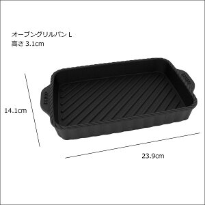 商品詳細 【オーブングリルパン L】 ■サイズ:幅23.9cm×奥行き14.1cm×高さ3.1cm ■重量:約1.5kg ■材質:鋳物 ■備考 ・食洗機使用可 ・オーブン使用可 ・電子レンジ使用可 ・直火、IH不可 スタッフコメント 焼けたらそのまま皿ごとサーブ! オーブンやトースターにそのまま入れる事ができます。
